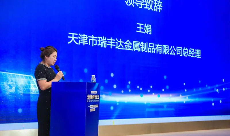 作为本届论坛的主办方之一,天津市瑞丰达金属制品有限公司总经理王总上台致辞,欢迎光伏领域的专家学者、企业领袖、业界精英的到来,感谢大家在百忙之中抽出时间来到会议现场,大家欢聚一堂、共同探讨、深入交流,共议“双碳”目标下光伏产业发展思路及未来展望。