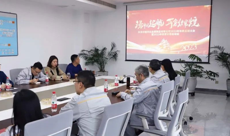 2023年1月12日,天津市瑞丰达金属制品有限公司组织召开“扬帆起航·再创辉煌”——2022年年终总结大会暨2023年经营计划启动会。公司领导张总、王总、公司各部门负责人出席本次会议。