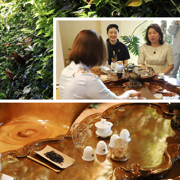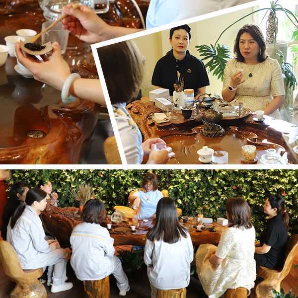 在王娟王总的带领下,大家纷纷学习到了茶的冲泡技巧。从执壶、持杯、闻香再到斟茶、品汤、致谢,一举一动之间,展示出女性优雅端庄的气质,大家细细地互相品尝着芳香的茶水,沉浸在优美的意境之中,现场暖意融融,茶香馥郁芬芳。