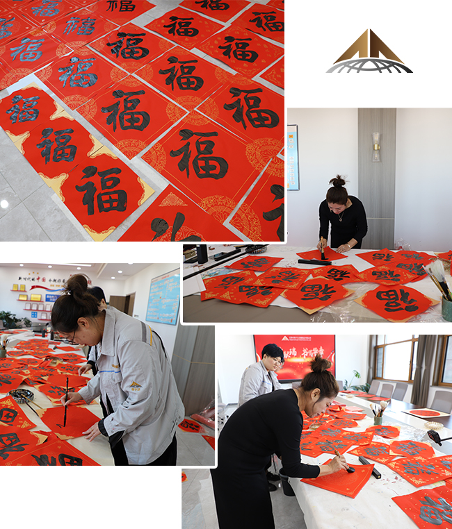 岁末辞旧迎新之际,天津市瑞丰达金属制品有限公司组织了一场写福字送祝福活动。在王娟王总的带领下,员工们挥毫泼墨,共绘新春“福”韵。