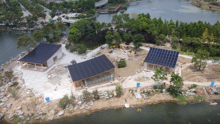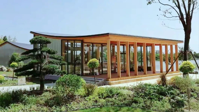 分别为“斋”“堂”“阁”“亭”,代表住宅、会议、咖啡厅等,实现家居、办公、休闲等场景示范。三座建筑总面积为480㎡、装机容量130KW、年发电15万度,预计能实现年减排二氧化碳120吨。