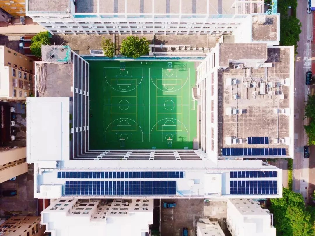 校园内屋顶安装了共144块光伏组件,容量总计50kW,年发电量可达5.7万kWh,相当于中国香港160个4口之家一个月的用电量。项目产生的清洁电力将每年减少28500公斤二氧化碳排放,等同于植树1240棵。
