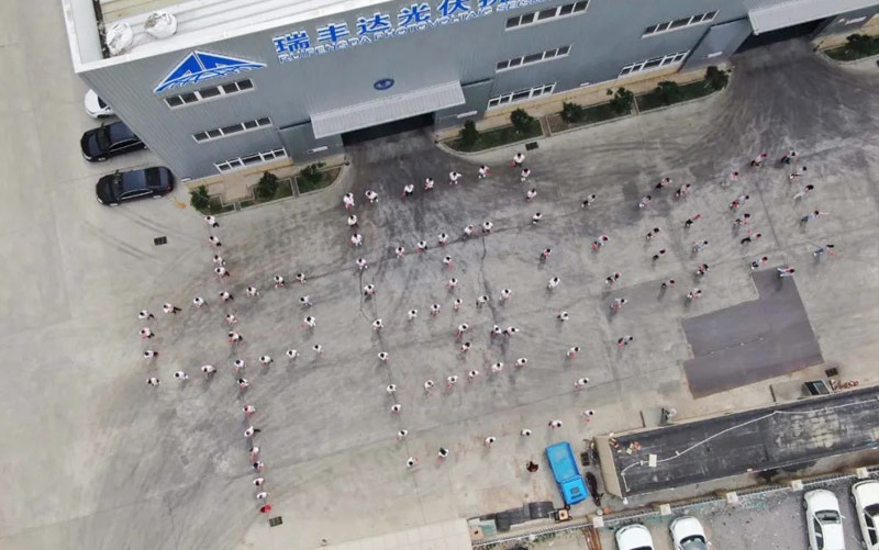 活动第一部分,全体员工在厂区门口空地上摆出”中国100“字样,画面十分气派。