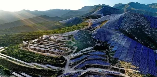 山西芮城光伏领跑者示范基地内的100兆瓦光伏发电项目全容量并网发电,位于中条山南侧60度荒坡上的“蓝盔甲”开始收获“阳光”,源源不断将太阳能转化的电能通过电网送入千家万户。