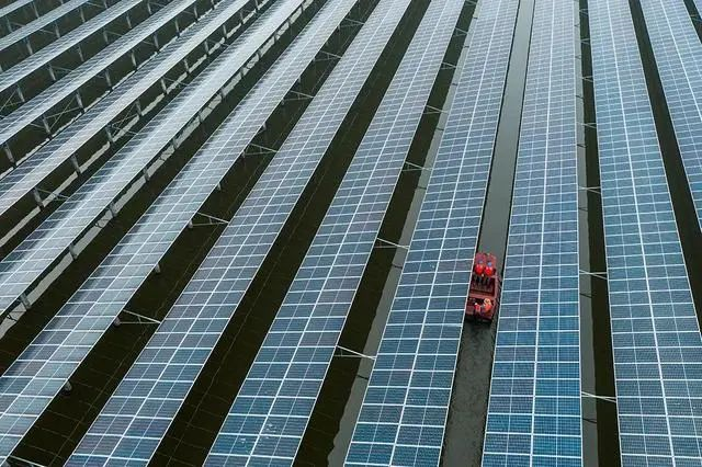 据悉,泰瀚550兆瓦渔光互补项目总装机容量550兆瓦,占用水域面积约4.7平方公里,项目总投资24.5亿元。项目共安装万片光伏组件,排列组成24 个区块进行发电,日平均发电量可达178万度。项目将渔业养殖和光伏发电相结合,实现板上发电、板下养鱼,让集约用海变成现实。