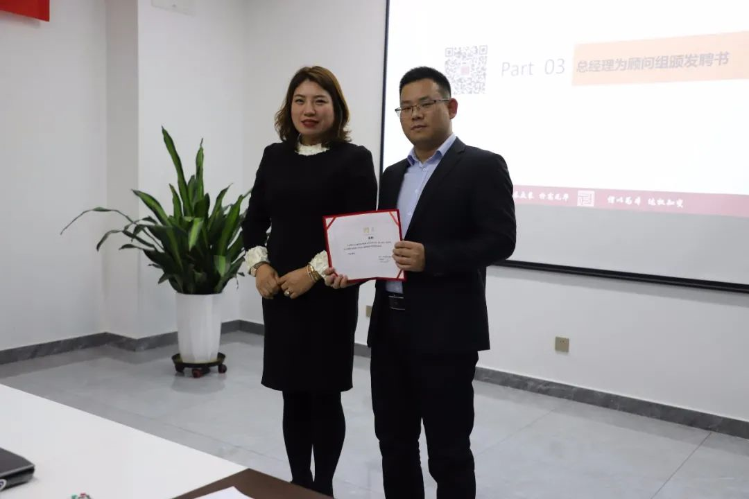 会议期间,瑞丰达金属制品CEO王总为顾问组颁发聘书并表示欢迎博朴信达三位代表的到来,公司上下定会通力配合,快速改善公司管理现状。