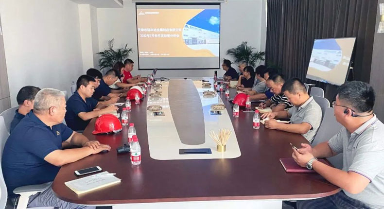 8月中旬,天津市瑞丰达金属制品有限公司7月份经营分析会圆满结束,本次会议意在对公司7月份经营情况以及管理工作进行全面剖析,并对公司下一阶段经营管理工作进行安排部署。公司董事长王总、总经理张总以及公司各部门负责人参加会议。