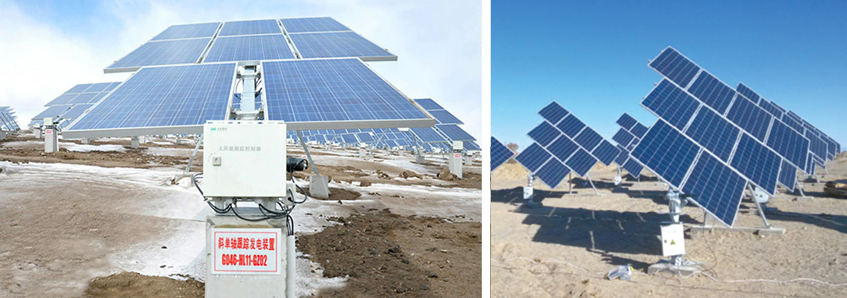 瑞丰达金属制品斜单轴追踪式光伏支架,由于平单轴跟踪的电池板垂直线与太阳光始终有一个夹角,在高纬度地区夹角较大,不比固定倾斜安装效率高多少。为提高电池板的效率,可将电池板的转轴倾斜安装,减小电池板垂直线与太阳光的夹角。